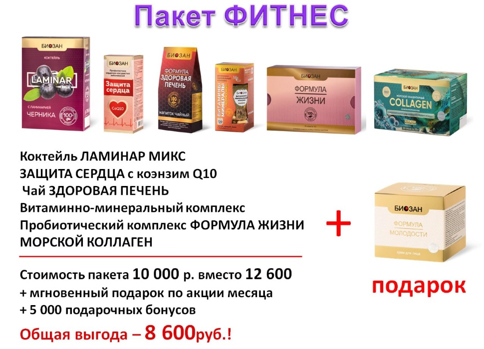 Стоимость пакета 10 000 руб. вместо 12 600 руб. Дополнительно вы получаете мгновенный подарок - Крем Молодость, стоимость которого 1000 руб, + подарочный бонус в следующем месяце 5000 руб.